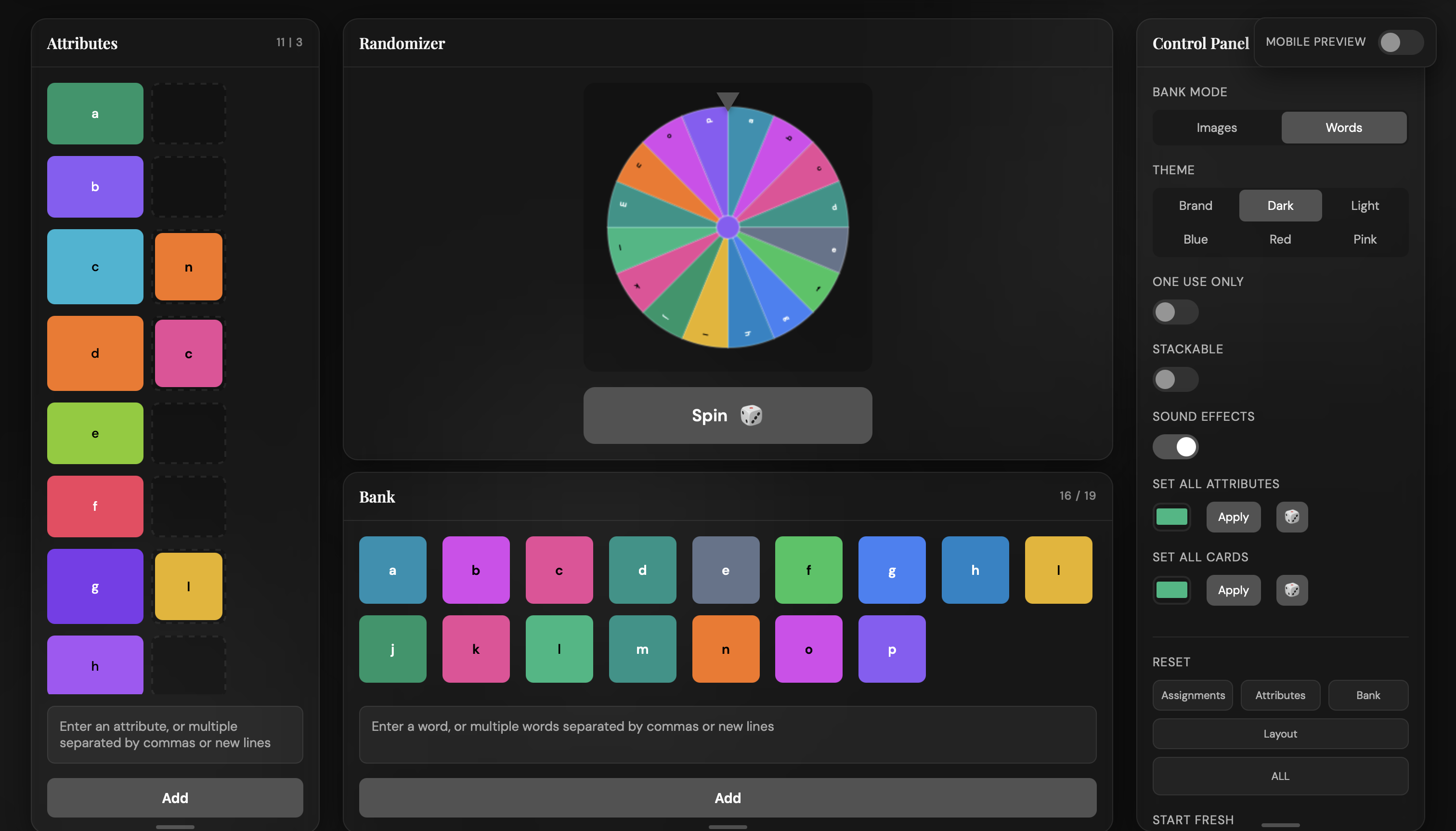 Build it. Shuffle it. Lock it in. No take-backs. A randomizer tool for content creators who want to shake up their creative process.